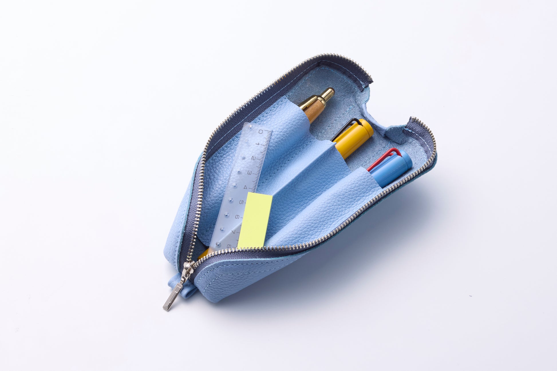 ペン差しの仕切りは3つあり、最大5本のペンを収納することができます。